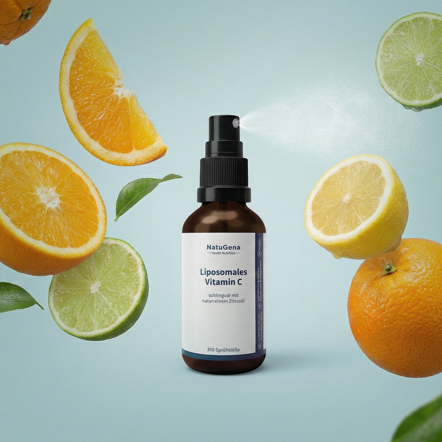 Dank der Spray-Form ist NatuGena Liposomales Vitamin C besonders leicht anzuwenden. Der angenehm frische Geschmack mit natürlichen Aromen aus Orangen-, Zitronen- und Limettenöl macht die tägliche Anwendung unkompliziert und angenehm, ob zu Hause, unterwegs oder im Büro. Die flüssige Form ist besonders für Menschen geeignet, die keine Tabletten einnehmen möchten oder auf maximale Bioverfügbarkeit achten.