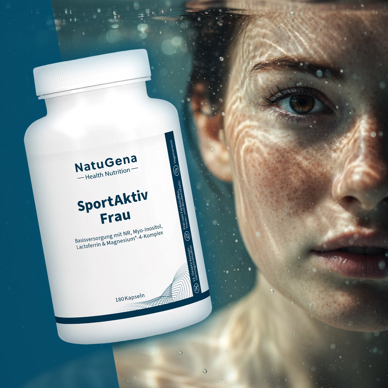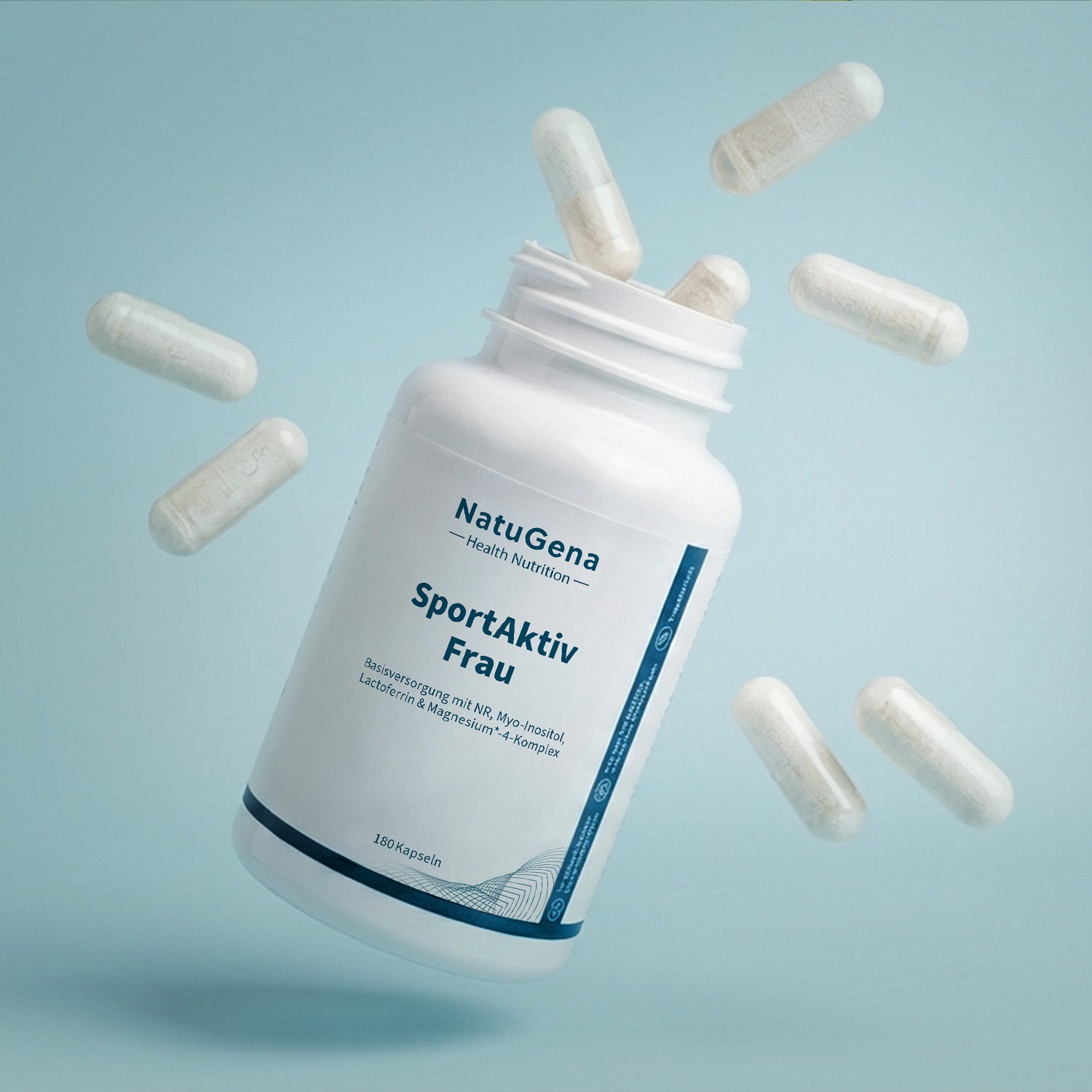 SportAktiv Frau von NatuGena – Eine durchdachte Mikronährstoff-Formel für die Basisversorgung aktiver Frauen beim Sport. SportAktiv Frau liefert ausgewählte Vitamine, Mineralstoffe und funktionelle Inhaltsstoffe. Enthalten sind unter anderem ein Magnesium-4-Komplex, bioaktive B-Vitamine, Lactoferrin, Myo-Inositol und Nicotinamid-Ribosid. 180 vegane Kapseln für eine 30-Tage-Versorgung.