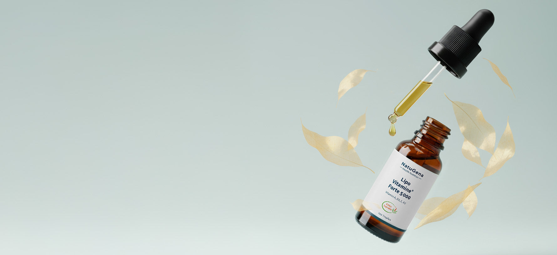 Vitamin D ist fettlöslich; mit Fett einnehmen. Flüssige NatuGena‑Produkte sind in MCT‑Öl gelöst. Liposomale Formulierung (Öl‑Wasser‑Emulsion) ermöglicht gute Aufnahme über die Mundschleimhaut.
